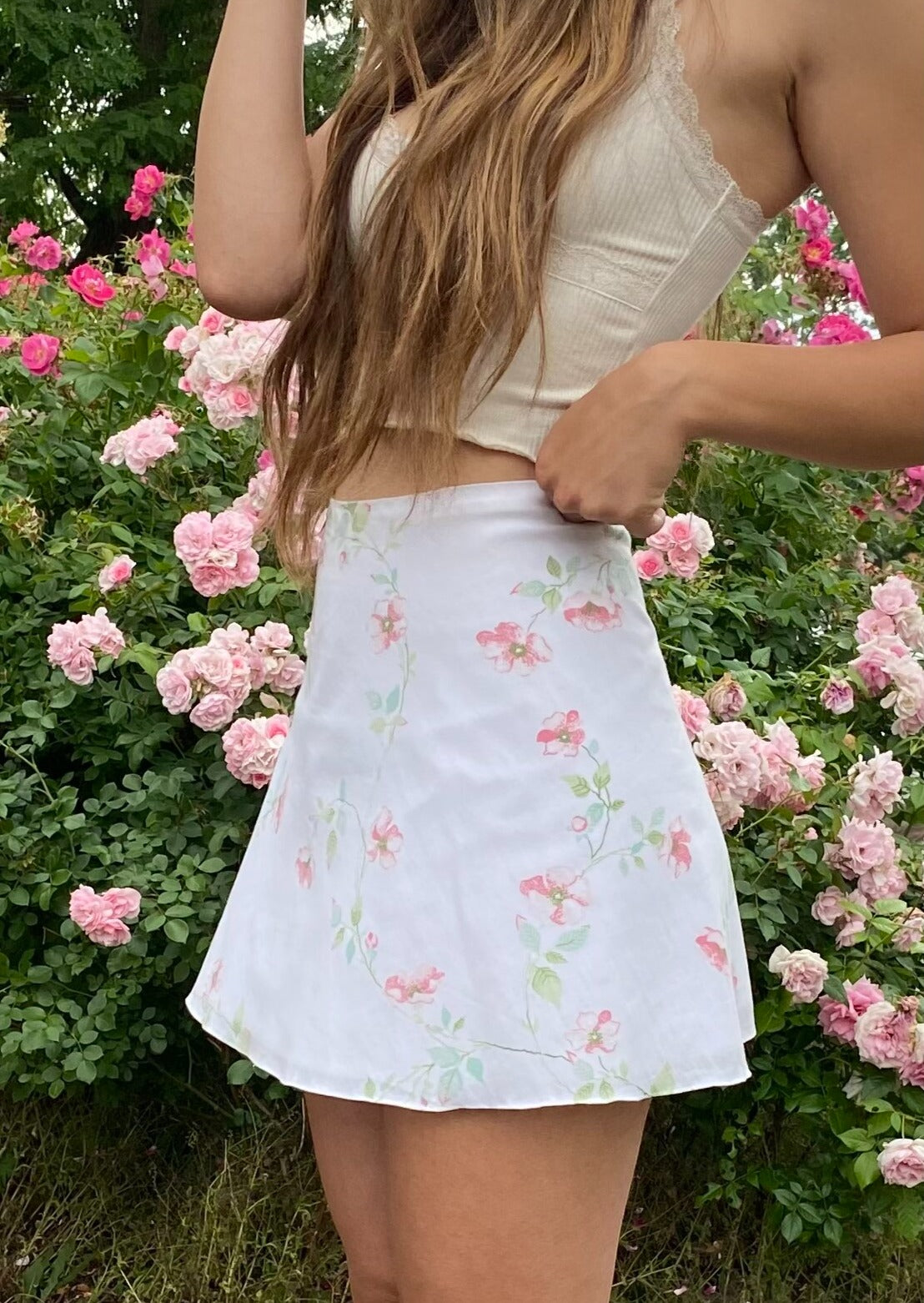 The Rose skirt with lovely floral prints is the romantic mini skirt you needed this summer